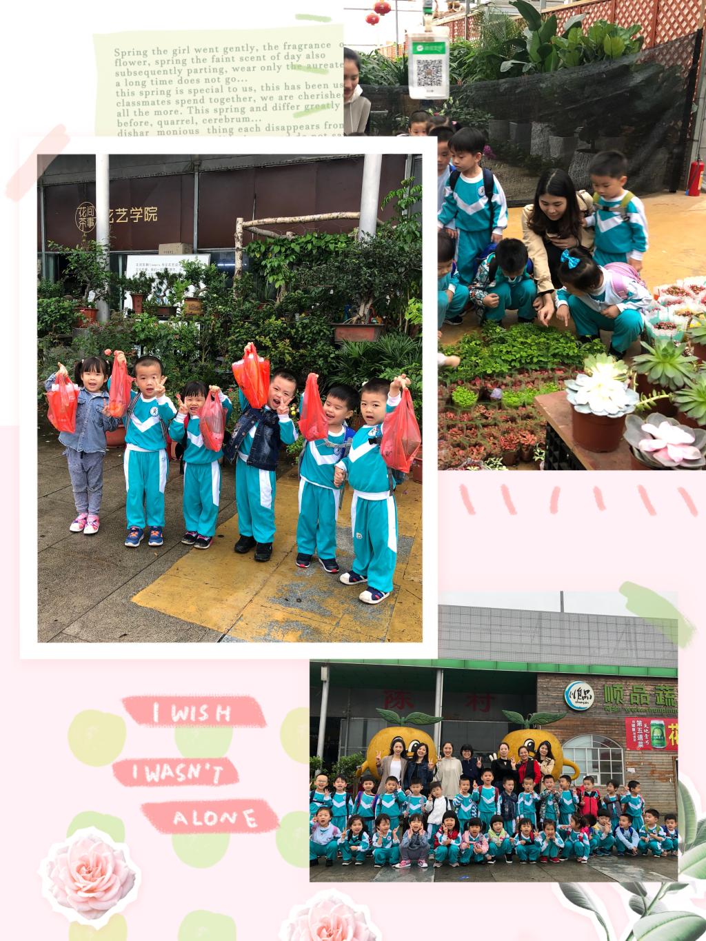 为了加深孩子们对花卉植物地了解,博实乐碧桂花城幼儿园小班组于5月13日在陈村花卉世界举行了“植物主题”的结题活动。在热心的家长义工们的帮助下,我们顺利抵达目的地。一下车小朋友们就迫不及待地往里张望,想一览花卉植物之风采。