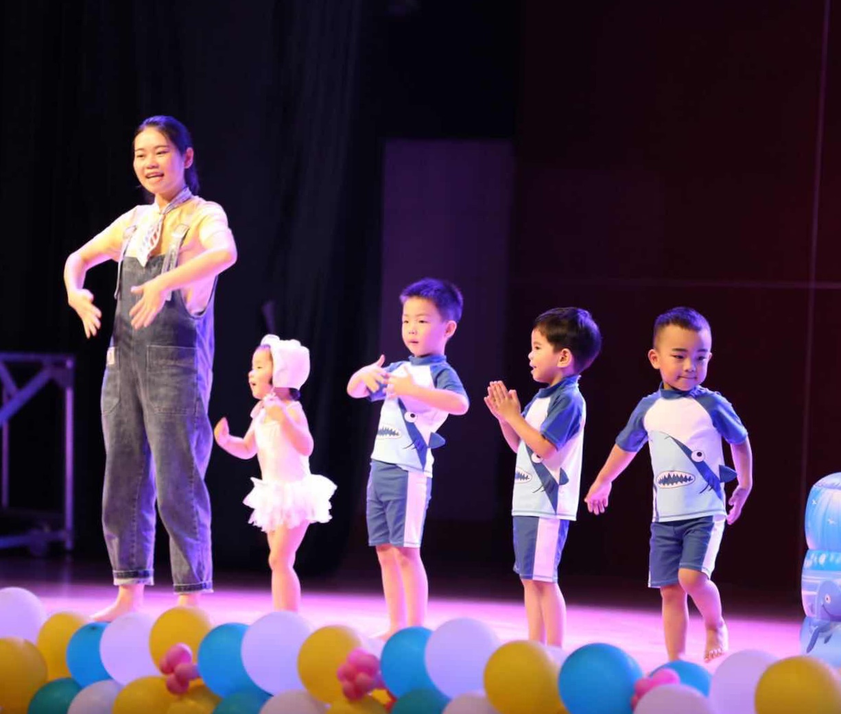 演出中的小朋友们全情投入,用欢快的歌声、可爱的舞姿来庆贺着自己的节日。小朋友们稚嫩的笑容感染着在场的每一位观众,让大家仿佛回到了童年时期。