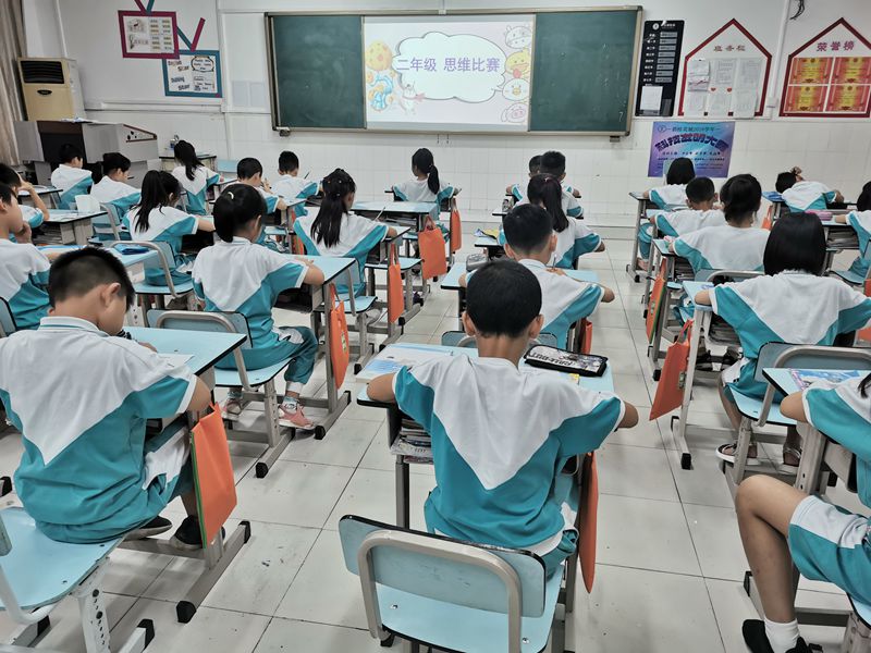 在您的记忆中,数学是什么?枯燥的计算?没完没了的解题?不,在碧桂花城学校,数学更意味着有好玩的思维游戏、有能参与实践的数学活动以及需要集中注意力的有趣的智力大比拼。为进一步提高学生的数学素养,激发学生学习数学的兴趣,6月5日,我校二年级继一年级之后也开展了数学思维竞赛活动。