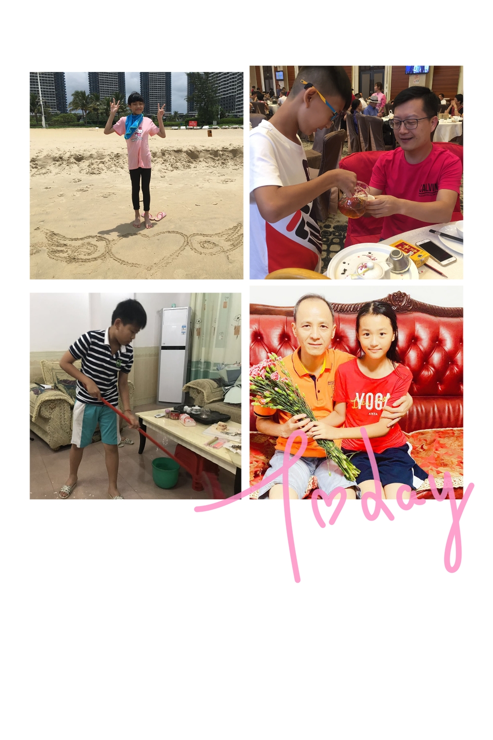 花城学子习礼仪,知感恩。有的为父亲制作了节日礼物,有的对父亲表达了节日的祝福;有的给父亲泡一壶茶;有的为父亲捶捶背,揉揉肩;有的帮父亲收拾餐桌、倒垃圾;有的帮父亲洗车;有的和父亲一起运动;还有的为父亲讲故事或表演节目……孩子们用实实在在的行动,表达了他们对父亲的崇拜、爱戴和感恩之情!