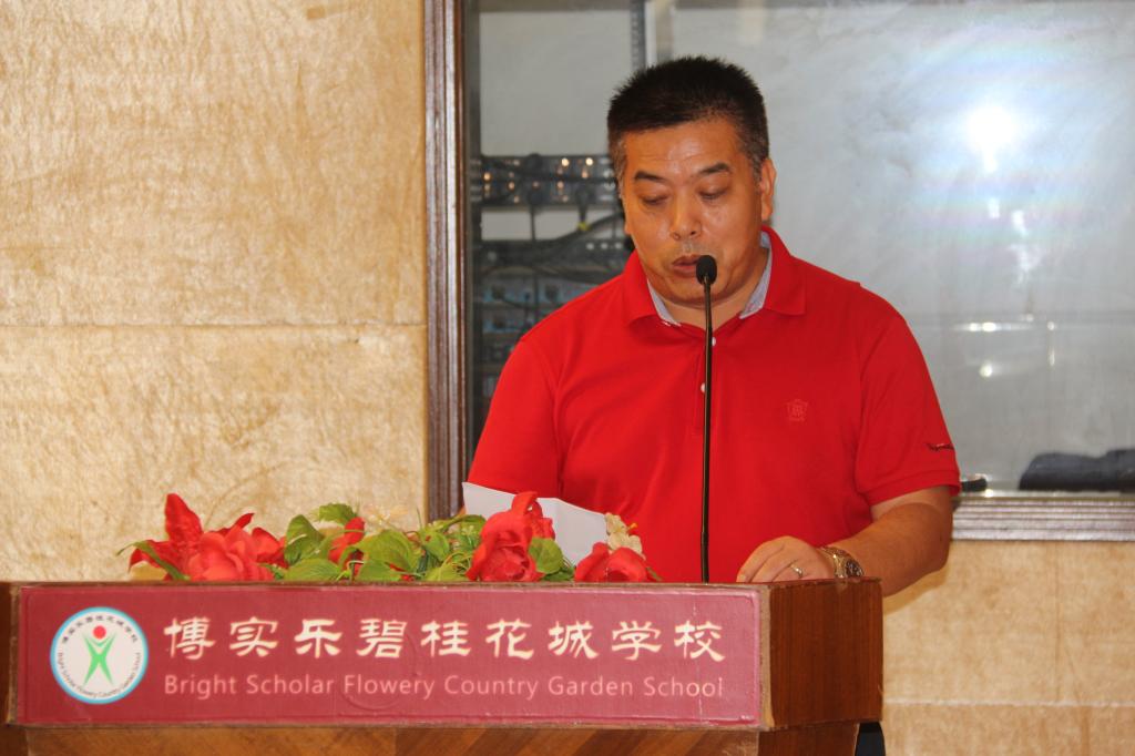 在学生代表为老师献花之后,是碧桂花城学校贺校长为我们作毕业致辞。贺校长称赞了同学们在花城学校的成长与收获,从幼稚走向成熟、从无知走向聪慧、从浮躁走向沉稳,学会了求知,学会了合作,学会了做事,也学会了做人。他希望,同学们在今后的人生道路上拥有阳光的心态,良好的习惯和拼搏的精神;拥有一颗感恩的心,用积极的人生态度和辛勤的汗水去书写靓丽的青春。