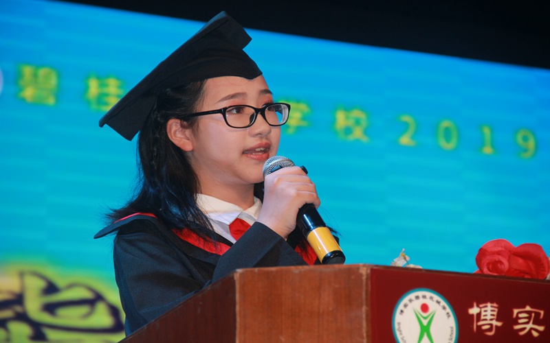 接着,六年(1)班胡捷晞同学代表全体毕业班学生发表了毕业感言。她用真挚的话语,表达了对学校衷心的谢意和依恋,对老师的尊敬和爱戴,和对同窗友谊的珍惜和不舍。
