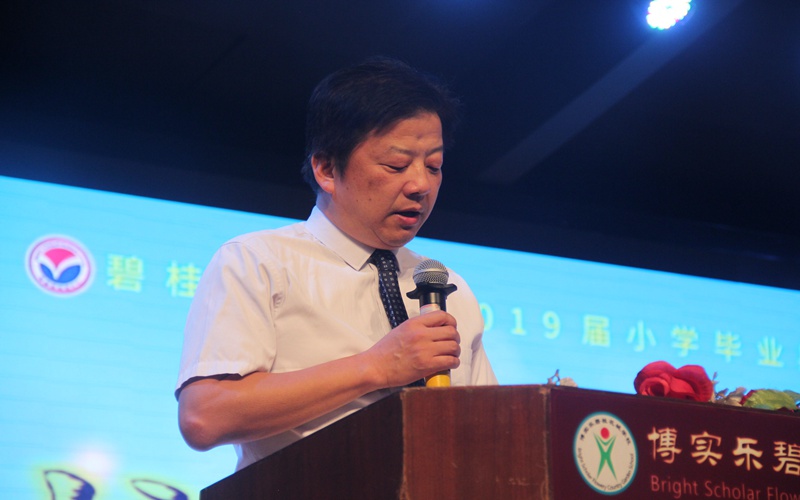 典礼在庄严肃穆的国歌声中拉开帷幕。贺小勇校长代表学校向全体毕业生进行致辞。他首先向圆满完成学业的毕业生们表示热烈的祝贺,向辛勤工作的老师们表示衷心的感谢,同时也对毕业生提出了更高的要求,他嘱咐孩子们要学会坚强,学会感恩,要懂得珍惜,从此刻出发,扬帆起航,驶向未来美好生活的彼岸。
