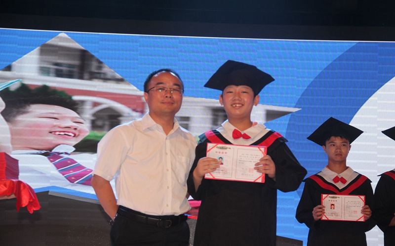 然后,学校领导依次给六年级全体学生颁发了毕业证书。那一句句谆谆细语,凝结了老师对孩子们的一片深情,寄托了学校对莘莘学子的殷切期望,也传达了学校对孩子们绵绵意浓的期待。
