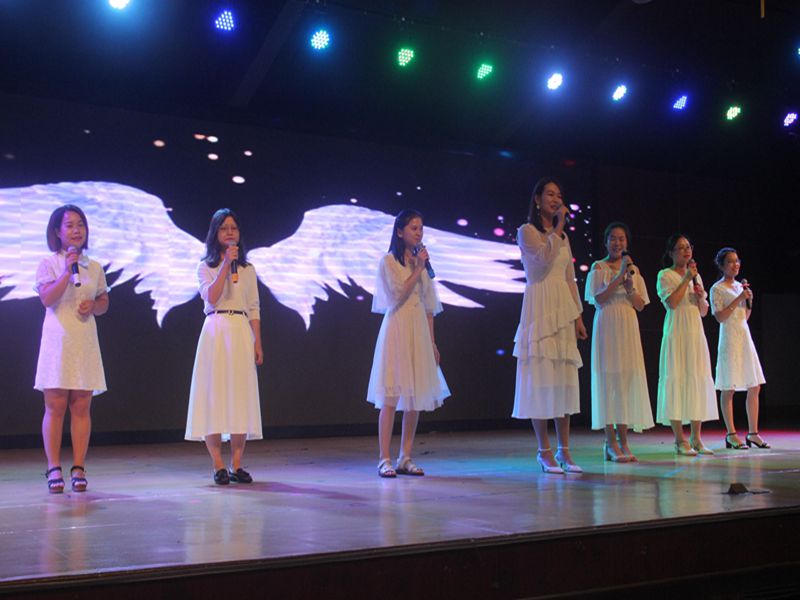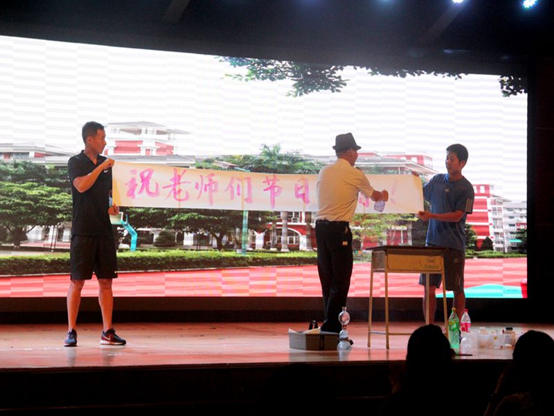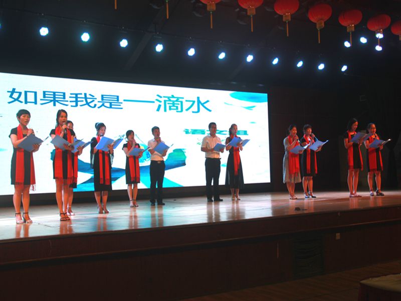 各科组准备了美轮美奂的节目为大会增添了亮丽的色彩:小组唱《Proud of you》、诗朗诵《我骄傲我是一名教师》和《一滴水》、魔术表演《化学魔术中的人生哲理》、男女组合唱歌曲《相亲相爱一家人》,不同的形式,都表达了花城老师对教育工作的理解和赤心,快乐中传递出锐意进取,不忘初心的信念。