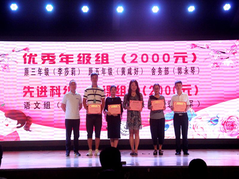 作为博实乐教育集团的一员,花城人始终不忘初心,牢记使命,尤其在集团校区运营部总经理、花城校区总校长贺小勇先生的带领下,全体教职员工齐心协力,以“本道教育”为核心理念,小升初、中考成绩年年告捷,用实际行动和优异的教学成绩塑造了花城品牌。今天学校特意设立了十个教育教学奖项,拿出将近十万元教育经费,表彰在工作中认真履行职责、甘于奉献、成绩突出的先进集体及个人,激励更多的人学习榜样,积极向上,营造出你追我赶的新局面。