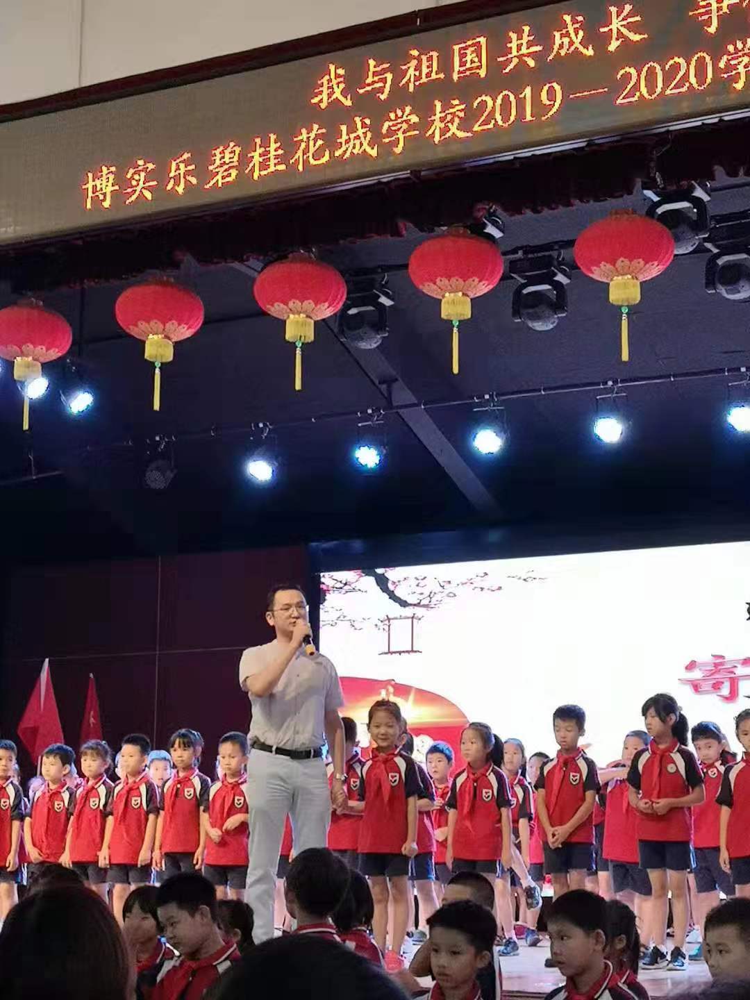 最后,王主任向新队员表示衷心的祝贺,并向全体队员提出了新的希望和要求。入队仪式在队歌声中圆满结束,整个活动庄严生动,简单朴素,给新队员一次深刻的教育。相信在红领巾的指引下,碧桂花城学校的少先队员们一定会更加朝气蓬勃、充满阳光,在学校愉快地学习!