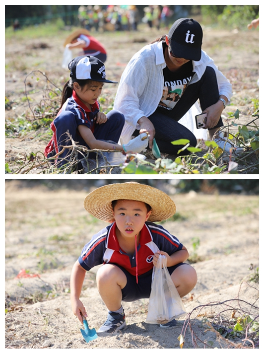 终于可以挖红薯了,孩子们每人领了把小铲子,快乐的奔向田地。红薯在哪里呀红薯在哪里?红薯在那小朋友的口袋里。千万别小瞧我们这些娃们,不到十分钟,每个小朋友都有不小的收获了,如果哪个小朋友没有找到,其他同学也会积极帮忙,甚至把自己的劳动果实拿出来分享。最后,个个小朋友们都满载而归,露出开心的笑容。