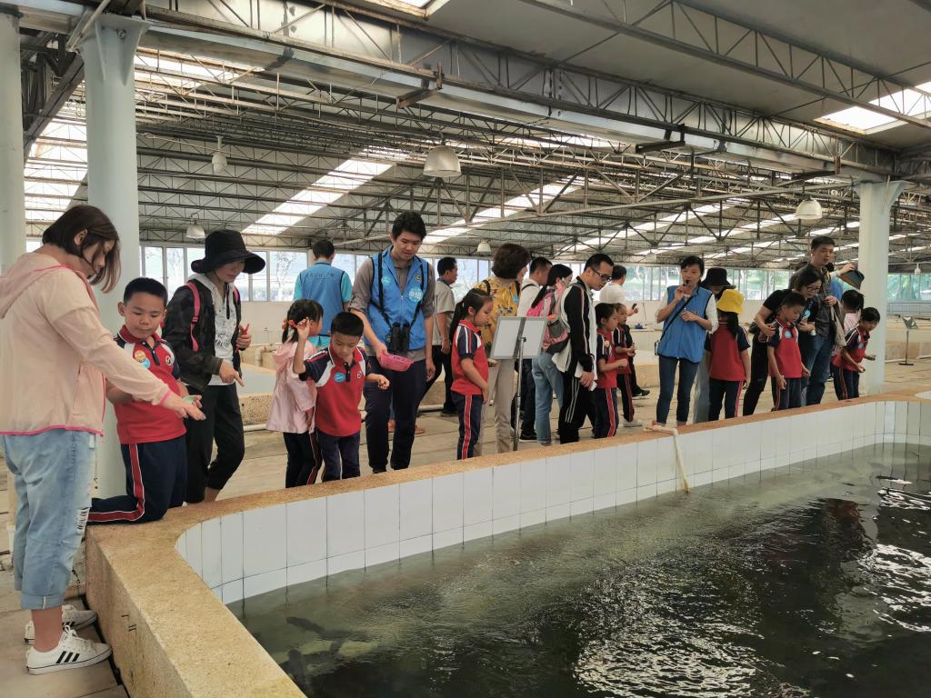 参观完标本馆,孩子们又在老师的带领下学着制作饵料,并且带着这些“营养丰富”的午餐来到了“救护大棚”,投喂中华鲟、花鳗鲡等,投喂过程中小朋友们从导师口中也了解到动物救助中的一些小故事、一些有趣动物名字的由来及它们各自的生活习性等知识。