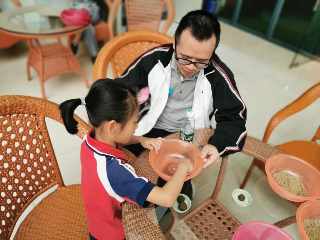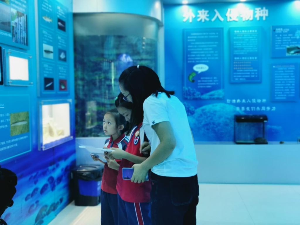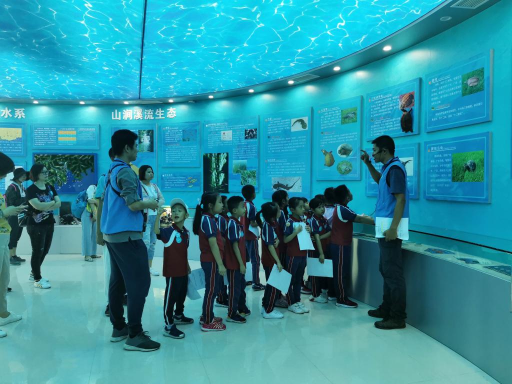 分组结束后,小朋友们有秩序地带着导师布置的“功课”来到了标本馆参观和寻找答案。看那一个个兴奋的小脸及一双双渴求知识的眼睛;焦急的步伐及找到答案后的欢呼雀跃;认真思考紧锁的“眉头”及想明白后一行行认真稚嫩的笔迹……同样认真的还有我们的家长,今天他们和孩子一样都是自然的学生,认真听、仔细看、认真记。参观完标本馆后,小朋友们对于珠江生态系统的保护物种有了一定的了解,也了解到环境对动物的影响及同类动物对动物及整个生态链的影响。