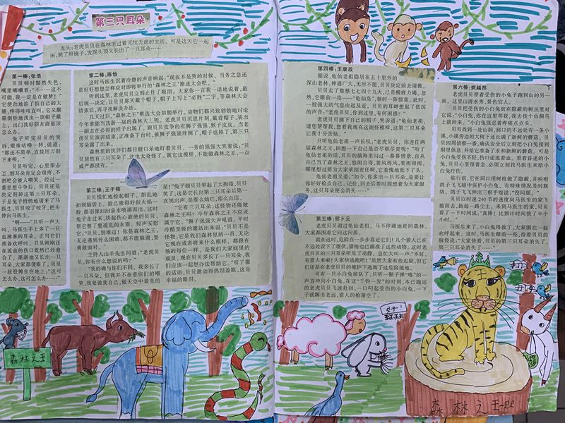 本次活动中,各班学生按照活动方案在老师的指导下大展身手。活动第一周同学们搜集报纸、刊物等各类资料,各班老师利用语文课指导学生对其进行筛选、分类、整理。紧接着,学生模仿报刊,将相关收集到素材进行排版,同时针对相关新闻还附上个人感悟、心得,最后为报刊剪辑作品设计封面及封底,并进行校正装订成册。一本精美的报刊剪辑作品就新鲜出炉了。经过展示及评比,各班选出一等奖两名、二等奖四名、三等奖六名,每班共12份优秀作品。