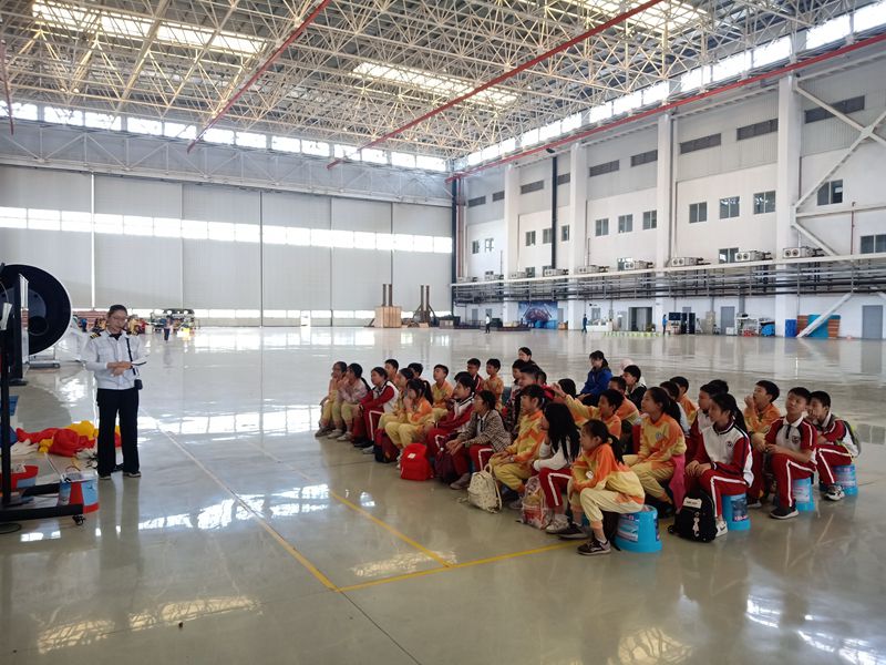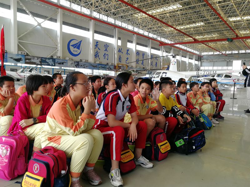 在飞机总装生产现场,当看到AG600国产救援两栖飞机时,同学们肃然起敬,在工作人员的讲解下,大家还了解了飞行器设计制造的基本原理,各类飞机的用途,以及许多有关航空的知识。随后,同学们还参观了航空文化展厅和航空文化长廊,了解了航空文化的发展历程。
