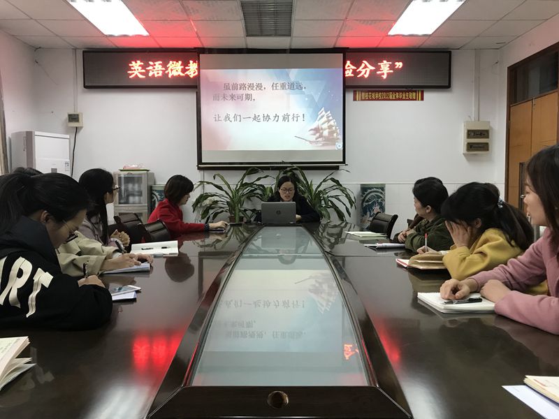 2019年12月5日下午,英语科组进行了教研例会,刚带完六年级毕业班的康郎平老师向英语组的同事进行了小升初教学经验的分享。