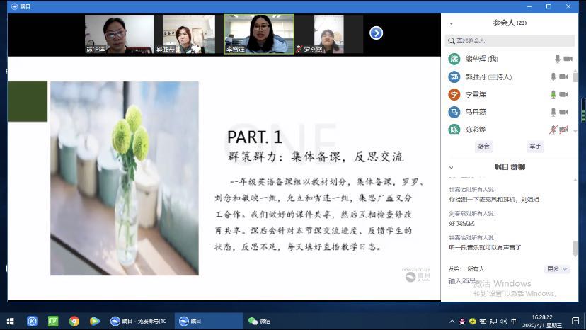 最后,老师们就近几周的线上教学的感悟进行了交流和沟通,纷纷表示这次的教研会的内容特别贴合实际,收益匪浅,会继续探索信息化教学新模式,及时总结经验,保证线上教学有序开展。