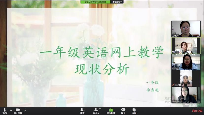 本次会议由一年级的李雪莲老师和四年级的李斯老师做代表,分享了线上教学的方法和经验。李雪莲老师从集体备课,作业检查以及检测,直播课上遇的问题以及解决办法,如何让学生更爱上你的课四个方面给大家做了分享。她分享了如何利用”接龙管家的小程序“收作业和检查作业,让繁琐的工作变得更高效。在如何吸引学生方面她介绍了合理使用评价机制,如及时表扬、给优秀学生发奖状等方法来激发学生学习的积极性。李斯老师是电脑技术达人,在网课期间她利用自身优势,精心制作精美的课件,吸引学生的注意,提高网络的效率。她分享了如何更好地利用网上资源,为课件找到更合适的素材。同时也与大家分享了如何利用ppt软件中的工具使课件更加的美观。