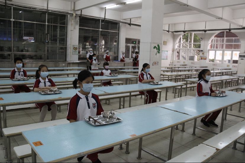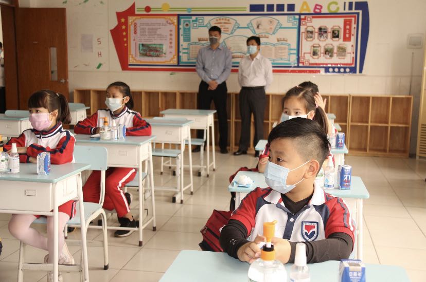 九点整,演练正式开始。本次演练针对复学后最可能发现疫情的几个重要节点,模拟了入校、课堂教学、就餐、午休四个场景。