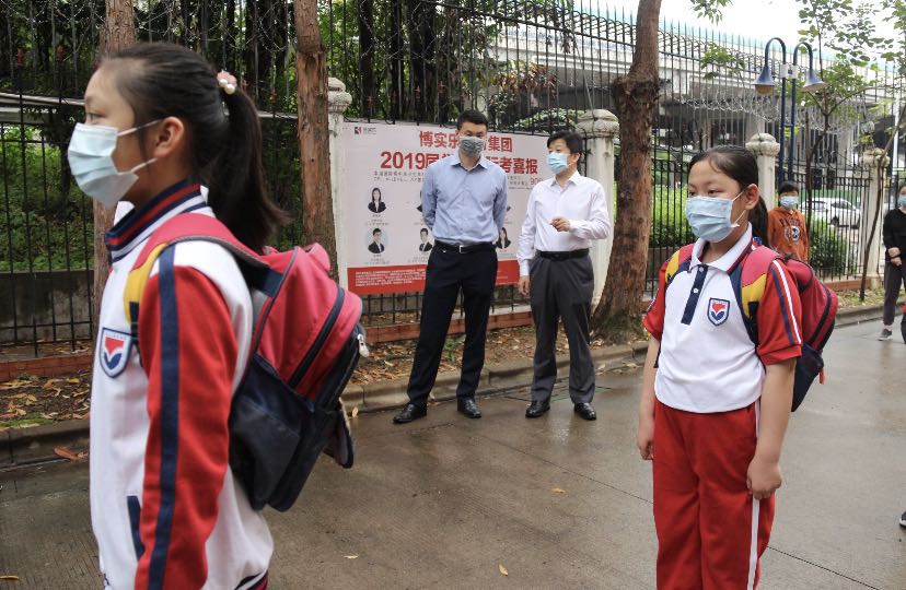 为进一步加强新冠肺炎疫情防控工作,提高应急处置能力,切实保障全体师生的身体健康和生命安全,确保复学后教育教学工作有序开展,2020年4月22日上午,碧桂花城学校在第一次演练的基础上,举行了第二次疫情防控应急演练,力求把返校复课后的每一个环节做“实”磨“细”,构建各个层面的铜墙铁壁。陈村镇党委副书记王德华同志莅临我校指导工作,学校行政人员、学科组长、年级组长、部分班主任、保安、后勤、校医参加了此次演练。
