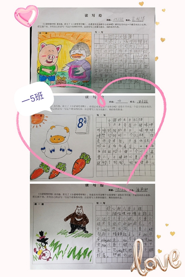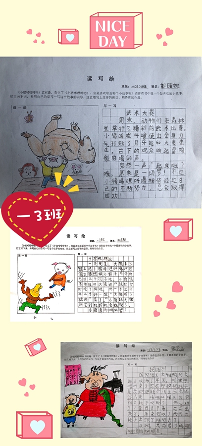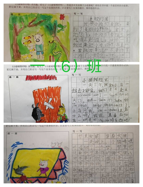 一年级开展了“快乐读书绘”活动,组织学生共读《小猪唏哩呼噜》。书中主人公——小猪,勇敢、善良的品质感动着每一个孩子。读完故事书后,一年级的孩子们充分发挥自己的想象力,设计出生动有趣的绘画作品。下面让我们一起欣赏一下吧!