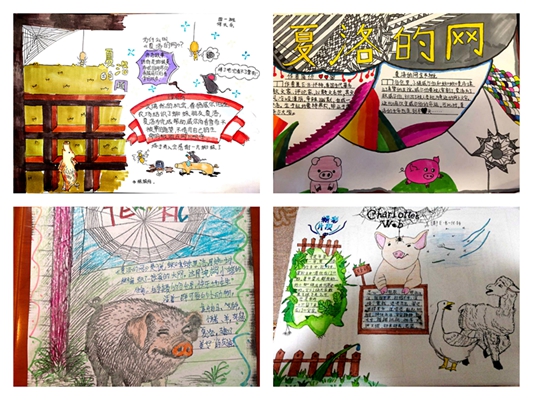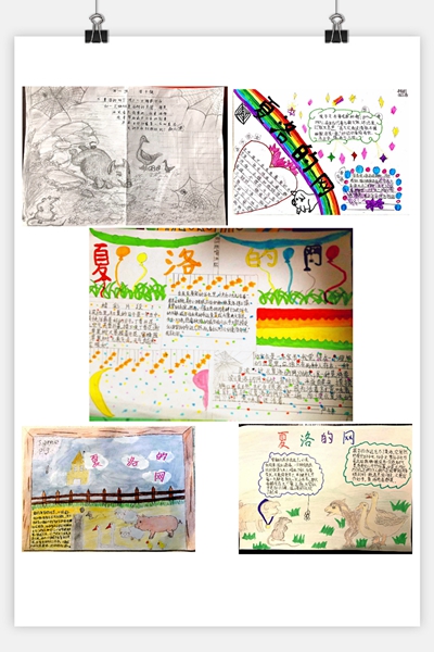 《夏洛的网》是一部妙趣横生的童话故事,作者用幽默诙谐的笔调和自然简朴的风格为读者创造了一个可爱的动物世界。四年级通过开展“读书观影”活动,组织学生共读书籍《夏洛的网》和观看相关影片,并让孩子们在线上分享读书感受和收获以及绘制手抄报作品,让孩子们从中感受读书的快乐,一幅幅精美的手抄报无不体现孩子们对书籍的热爱。瞧,这是他们的手抄报作品,多美啊!