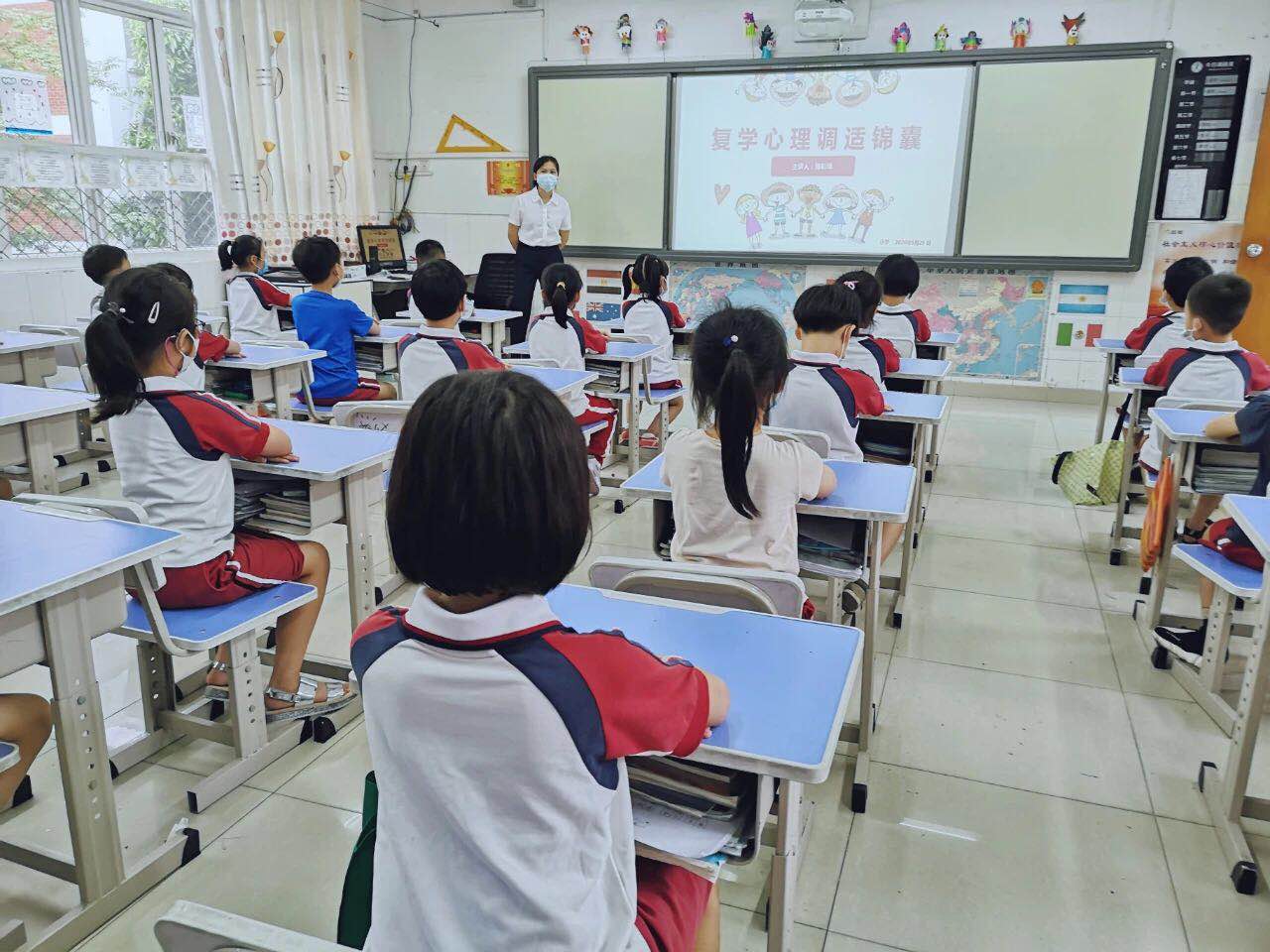 为了帮助孩子尽快适应学校生活,学校本学期专门开设了每周一节心理健康课。开学第一天,一、二、三年级都上了一节《复学后如何面对担心感染》的心理健康课,老师们用送小锦囊的方法,引导学生如何认识自己的情绪、如何学会求助、如何学会放松......教育学生敬畏自然、敬畏生命,学会积极面对生活。孩子们与老师积极互动,稚嫩而坚定的回答,就是成长的见证。