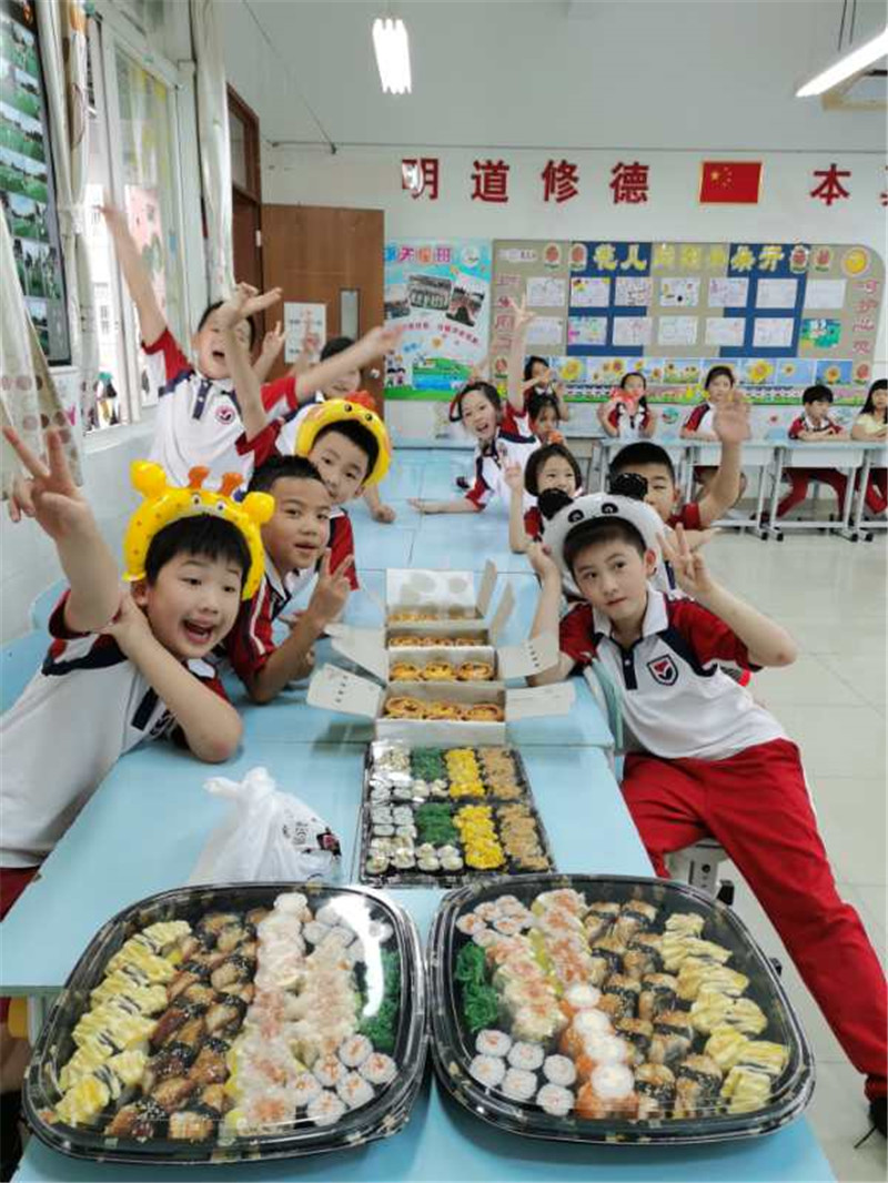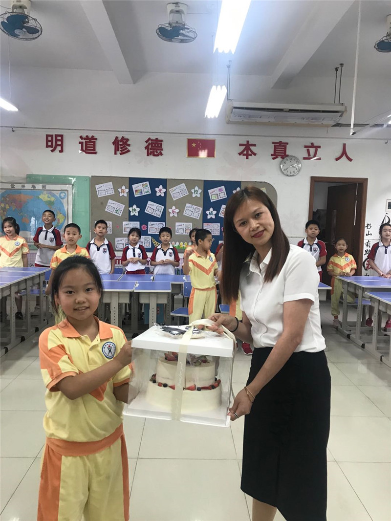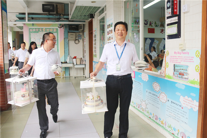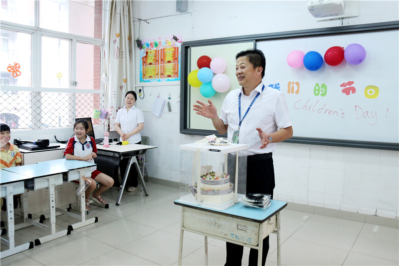 学校全体行政到每个班送上节日蛋糕,将庆祝活动推向了高潮,除了蛋糕,还向同学们送上了诚挚的祝福。甜甜的蛋糕,正如我们甜美的生活,孩子们歌声与笑声齐飞,整个校园汇成了一片欢乐的海洋。