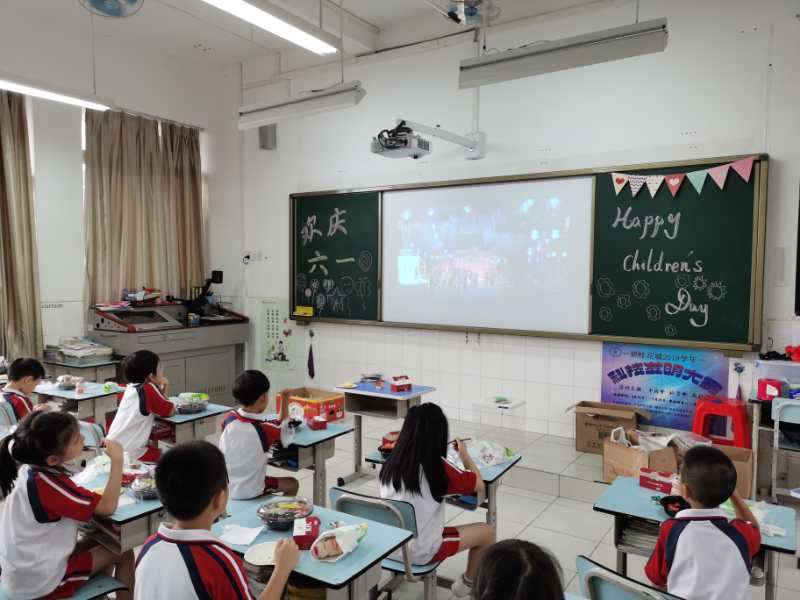 下午,碧桂花城学校里热闹非凡。由于疫情原因,学校不能在这美好的节日里举办大型的庆祝活动。但疫情的口罩遮不住孩子们银铃般的笑声,为了让孩子们过上一个难忘的儿童节,老师们出尽浑身解数,在班里组织同学们举行各种有意义的庆祝活动。有的班级举行“庆六一”文艺表演,孩子们在班级的小舞台上展示自己的才艺;有的班级进行礼物交换,同学们把祝福送给自己最好的伙伴;有的班级组织孩子们看电影,在光与影的世界中感受生活的美好;还有的班级进行“零食分享会”,孩子们互相分享着快乐。每一个教室里都洋溢着欢乐节日气氛。