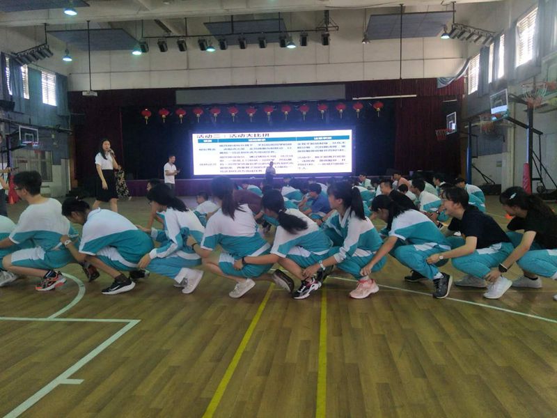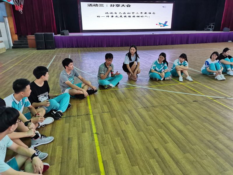 本次活动分三个环节:第一个环节:我们是一家。全体同学绕综合馆跑动,根据听到的数字自由组合成相应人数的小组,落单的同学将接受一定的处罚。第二个环节:活动大比拼,由蜈蚣竞走和搭桥过河两个小环节组成,率先完成的小组获胜。第三个环节:分享大会。同学们分享自己经历过的印象最深刻的事或者自己最感激的一个人。活动刚开始的时候,同学们还略显拘谨,随着活动的进行,大家逐渐放开,投入到紧张刺激的活动中。特别是分享环节,同学们纷纷举手发言,畅谈自身难忘的经历,倾诉同学间珍贵的友谊,表达对老师的感恩之情。活动最后,王展鹏主任为本次活动做总结,他肯定了同学们在本次活动中的精彩表现,也祝愿同学们在中考中取得优异的成绩!