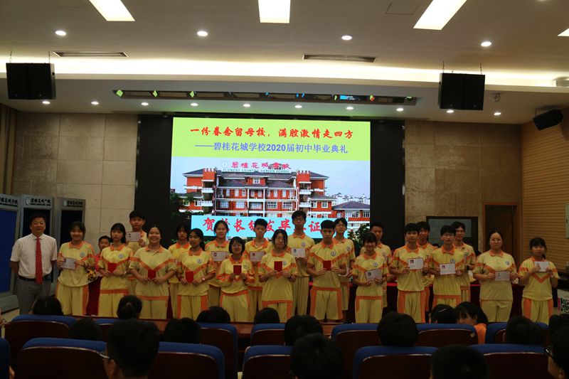 鲜花怒放桃李芬芳,歌舞飞扬不改离殇。随着中考最后一门学科--历史考试的结束,7月22日晚,碧桂花城学校在学术报告厅隆重举行2020年九年级学生毕业典礼。贺小勇校长出席了毕业典礼并讲话。