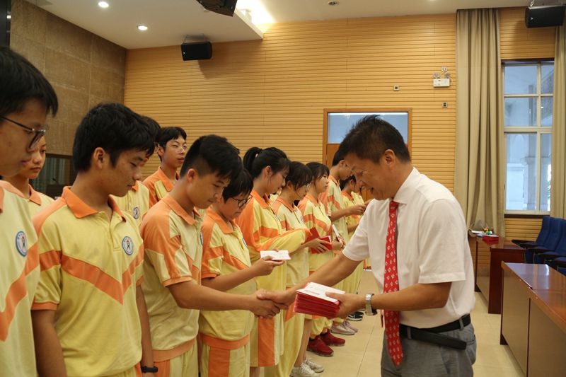 贺校长亲自为每一位同学颁发毕业证书,并与他们合影留念。最后,贺校长作了热情洋溢的发言,他充分肯定了同学们三年来在花城所取得成绩与进步,勉励同学们努力学习,以天下为己任,树立远大的理想,真正成为对社会有用的人,并盛情邀请同学们随时回来看望母校。