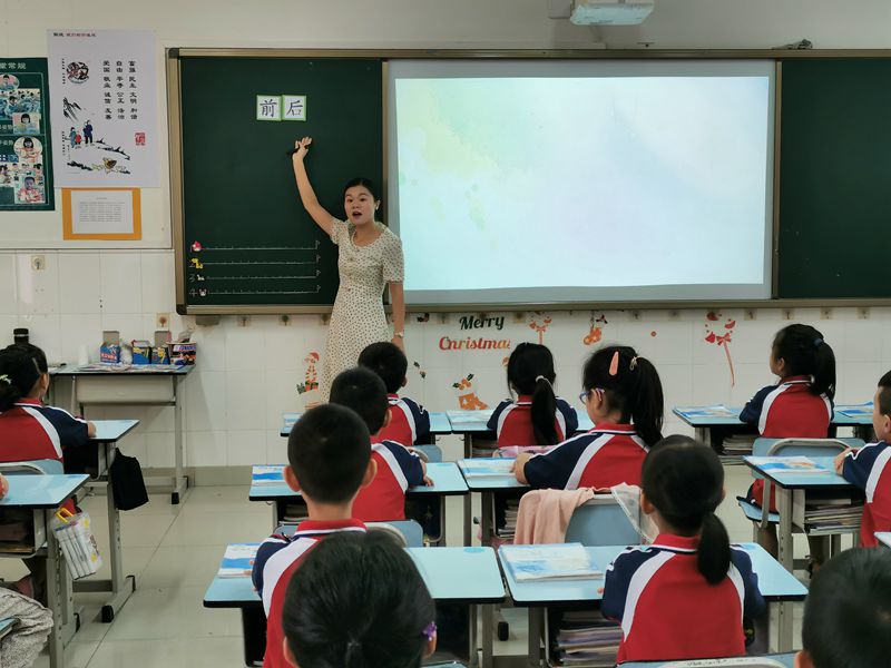 为了让新教师更快地适应学校本道教育的教学模式,博实乐碧桂花城学校于第四周开展了新教师亮相课展示活动。9月24日上午,数学科组黄淑妍老师在一年级3班献上亮相课——《前后》。