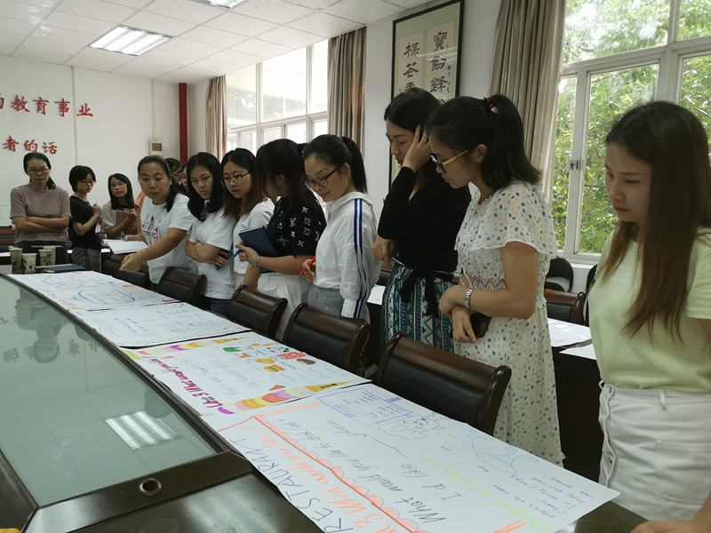 在智囊团的带领下,全体英语老师参与了马老师一次又一次的讲故事和说课打磨过程,从故事的内容、故事的表达形式、现场的表现力还有说课的专业术语等方面进行多次改进。短短两周的时间,马老师不断突破自我,迅速成长。