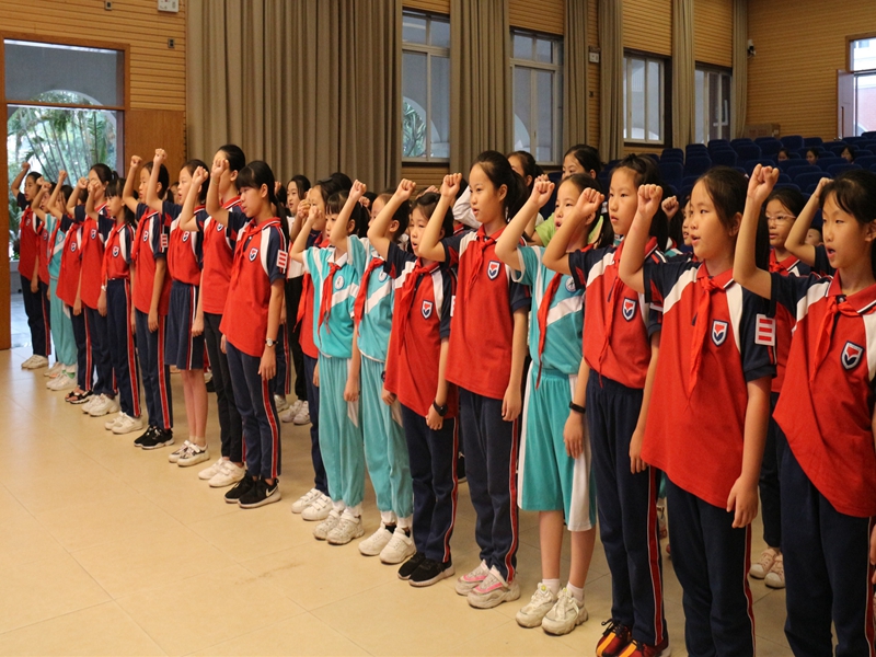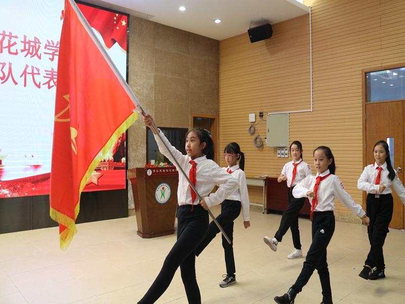 接着,少先队辅导员马婷老师宣读新一届大队委员的名单,并带领他们在队旗下宣誓。这些大队委员都是由自荐和中队推荐后,经历了层层考核和大家的民主投票才脱颖而出的。新任大队委们表示将用自己的实际行动,为队旗增添新的亮彩,为队旗书写新的光荣,让花城的少先队工作更加出色!