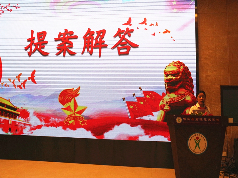 为深入贯彻落实习近平总书记“用实际行动把红色基因一代代传下去”“从小事做起,从身边做起,努力争做新时代的好队员”的要求和勉励,10月16日博实乐碧桂花城学校在学术报告厅召开第一次少先队代表大会。