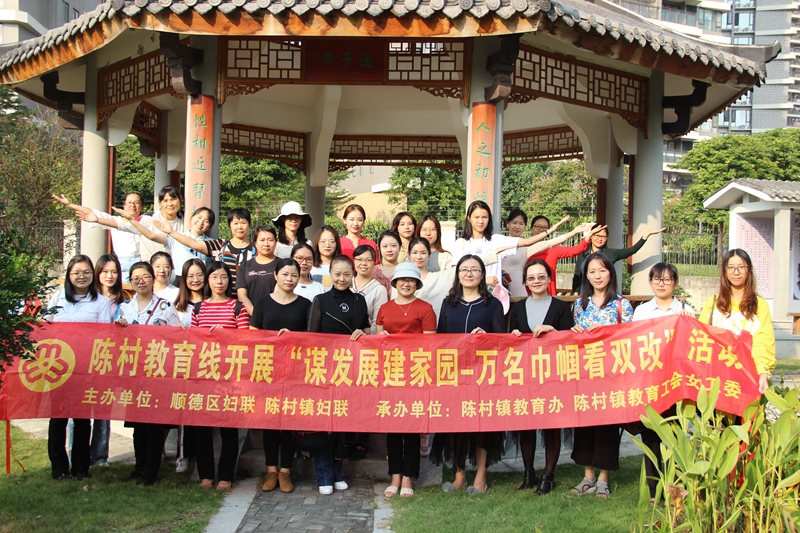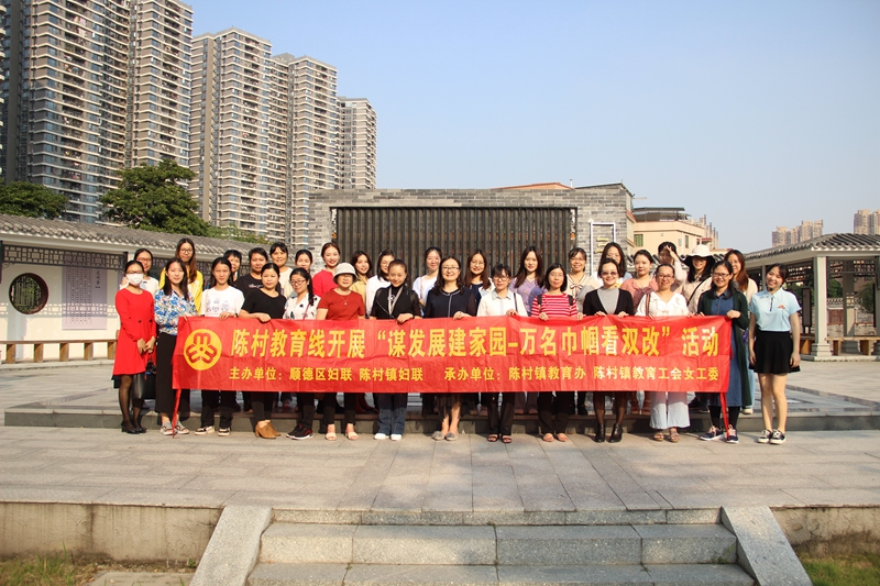 2020年11月5日下午我校妇委成员洪美红、吴杏秋、卢秀珍三名教职工,参加了由陈村镇教育办公室、陈村镇教育线女工委组织的“谋发展建家园——万名巾帼看双改”专题教育活动。当天下午,我们与其它各校妇委成员、骨干教师等50人一起由教育局出发,逐一参观了潭洲三字经公园--仙涌村美丽田园--年桔文化展示馆--朱子学堂--朱氏始祖祠--党建引领花村振兴展示馆。通过亲眼看、亲耳听,深切感受到了陈村镇近几年农村发展的新变化、新成就,更新观念、解放思想,积极主动支持和参与双改建设,让农村变得更强、更美,让农民变更富,生活变得更好!深切感受到农村的全面发展,乡村的振兴离不开妇女的力量,她们既是村改的享受者、受益者、更是推动者、建设者。