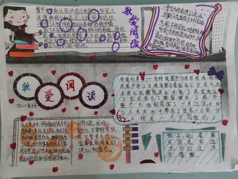 一本《中国古代神话故事》,让学生们体会到了我国传统文化的博大精深,扩大了他们的知识面;一张张美轮美奂的手抄报,不仅体现了学生对阅读的热爱,而且锻炼了他们的动手能力,提高了他们学习语文的积极性,更让他们体验到了学习的快乐。