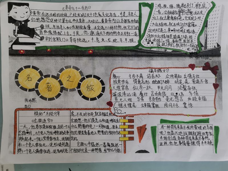 老师们先组织学生认真阅读《中国古代神话故事》,然后要求学生根据自己的阅读理解制作一份手抄报。在本次比赛中,学生们积极参与,从搜集资料、版面设计到色彩搭配,他们用自己的创意和巧手创作出了一张张精美的手抄报。许多作品不仅色彩丰富、图文并茂,而且内容生动活泼,版面设计新颖独特,充满了童真、童趣。