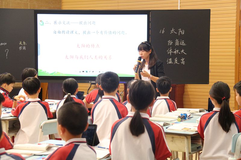 展示课由张萌萌老师执教,她上的是五年级语文课《太阳》,张老师充分运用信息化技术,借助北师智慧云平台的随机抽选、抢答等功能调动学生学习的积极性,采用云测试推送试题随堂反馈,并利用平板进行小组合作,让学生充分参与互动学习,提高了课堂的学习效率。张老师的这节展示课让听课的嘉宾全面地了解了智慧课堂教学的魅力。