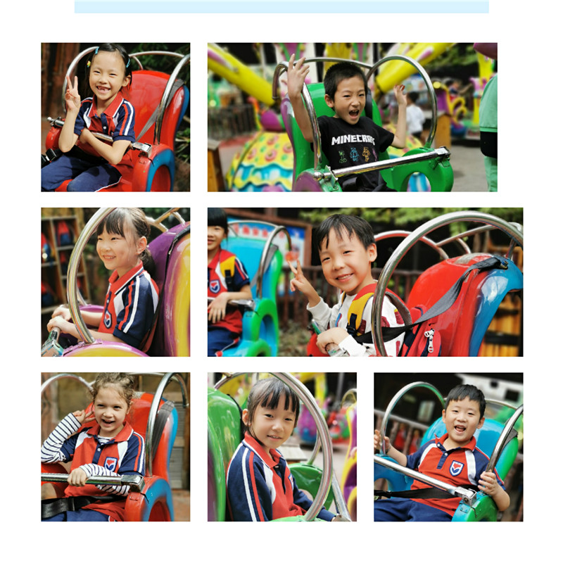 来到“机动游乐主题公园”,我们在摩天轮上俯瞰整个农庄全景、在空中单车享受空中漫游的奇妙,海盗船、碰碰车、丛林飞鼠、旋转木马等各种惊险刺激的机动游戏让孩子们流连忘返。