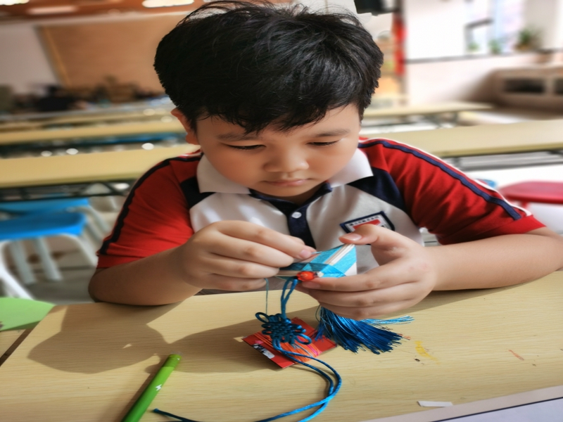 孩子们脸上不时露出欣喜的笑容,最后每个人都缝制出了颜色各异、独一无二的香包。小小的香包,是传统文化中表达感情、传达美好祝福的信物。精致的香包代表着同学们美好的祝福,在制作香包的过程中孩子们更是沉浸式地体会到了祖国传统文化的魅力。