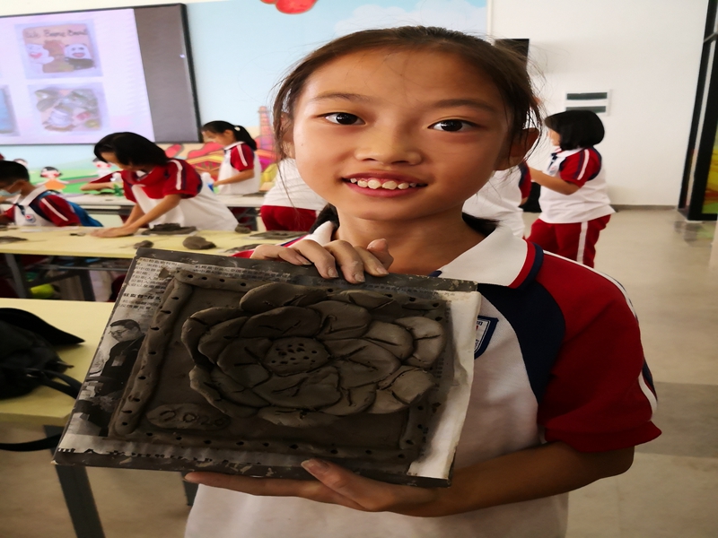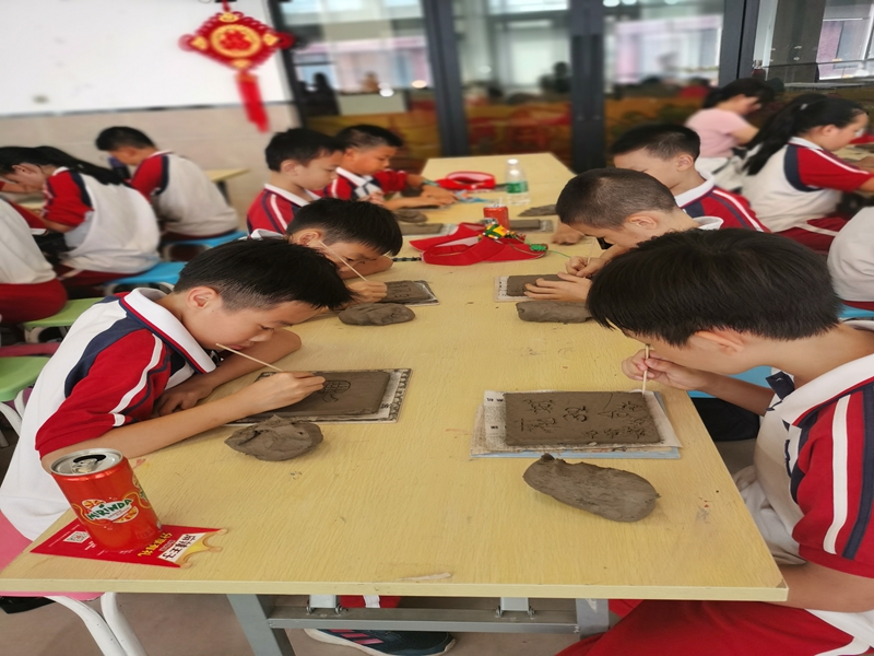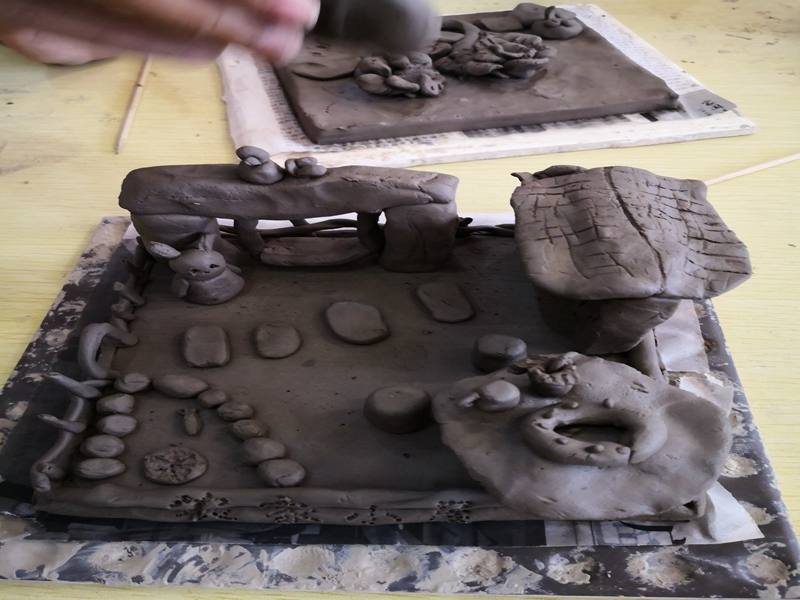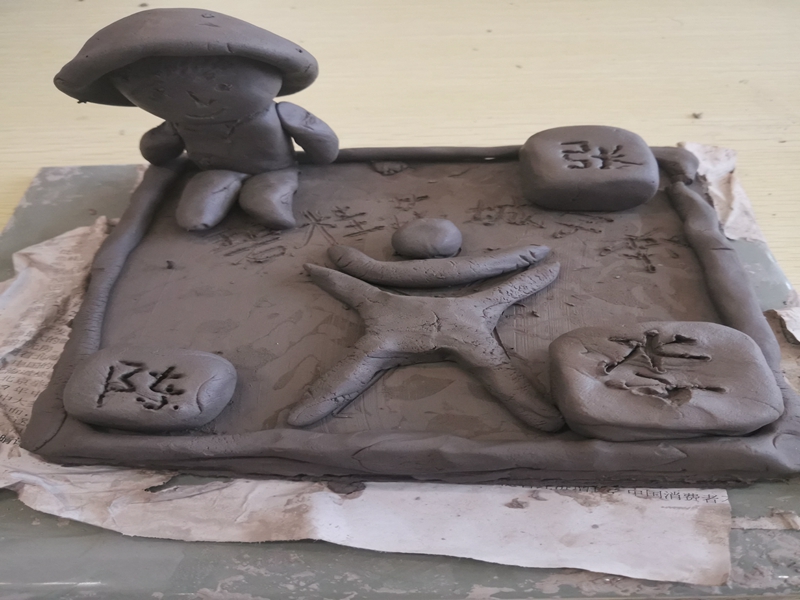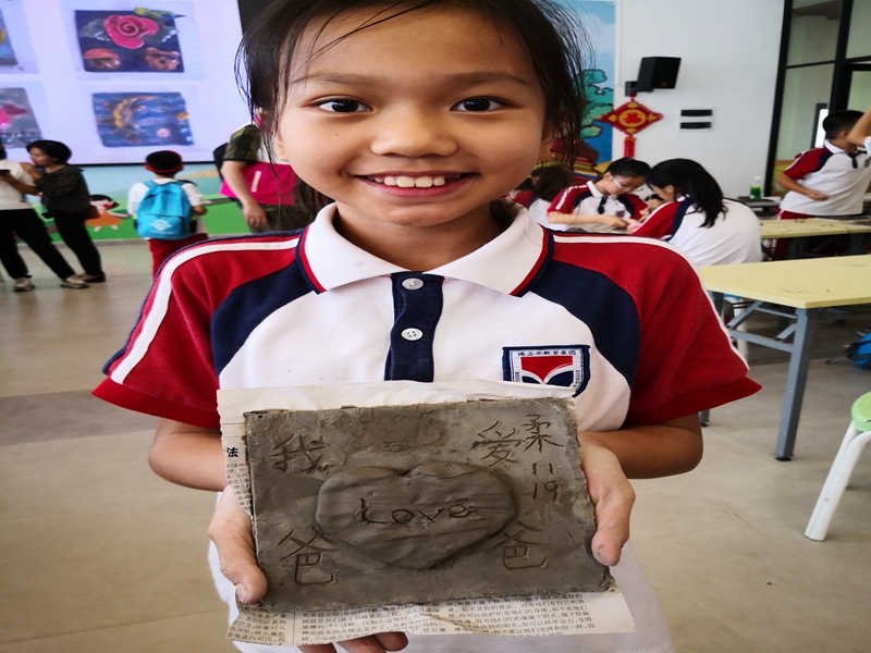 来到南风古灶怎能不体验捏泥玩土的制陶乐趣呢?孩子们在领到的陶砖上尽情地施展自己的才情创意,搓一搓,捏一捏,画一画,很快就将一块块创意无限的陶砖作品展现在我们眼前:一朵玫瑰花,一个爱心,一组小动物……每一个作品都栩栩如生,生动有趣。
