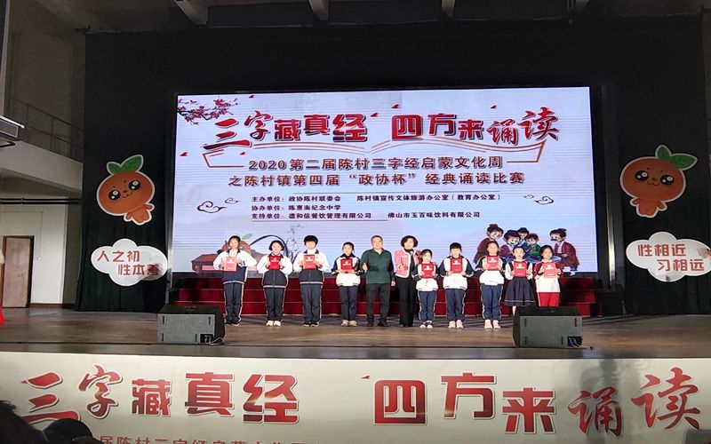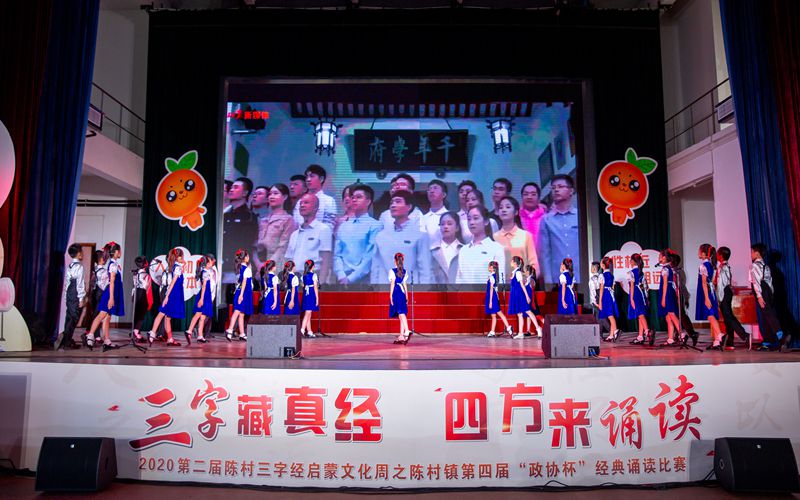 陈村镇作为三字经的发源地,为了更好地发扬与传承经典,陈村镇每年一次的“政协杯”经典传诵系列活动如期举行了,本次系列活动的主题为“盛颂三字经,齐绘三龙湾”之 “三字藏真经 四方来诵读”诵读比赛、“我与三字经的故事”征文绘画比赛。