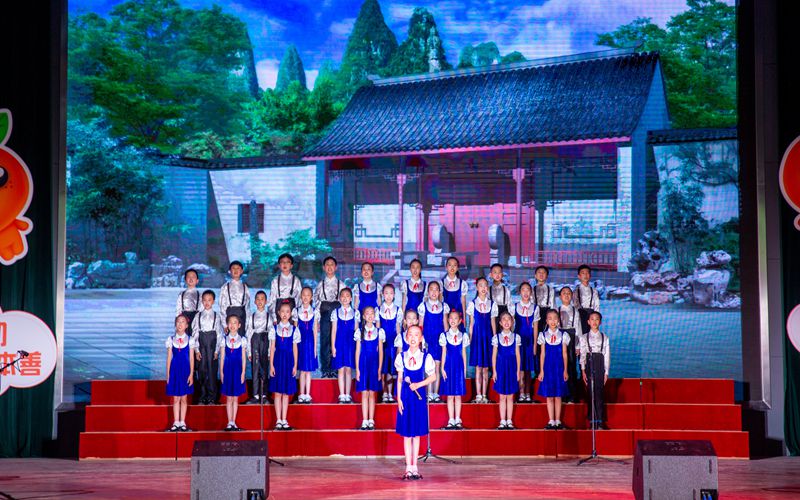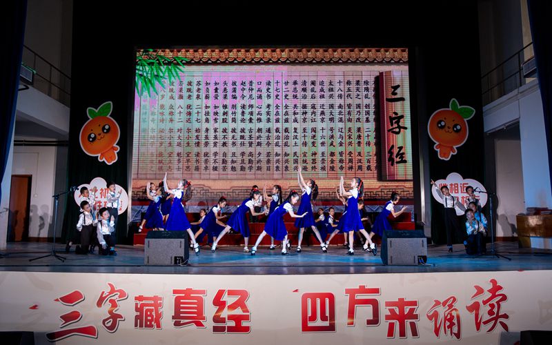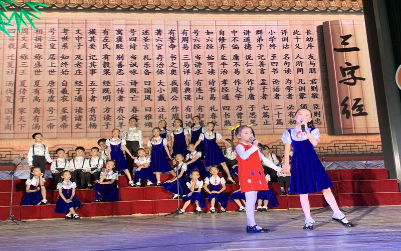 碧桂花城学校一直以来都积极响应传诵经典的号召,本次以“传承经典 润泽初心”为展示内容。在田桂花副校长、吉正军主任的指导下,在语文科组长黄晓芸老师的带领下,组建了由莫雪兄老师、张秋琴老师、朱嘉老师和吴丹老师为成员的节目小组,历经一个多月的艰苦排练,从内容、队形以及表演形式进行部署与训练。