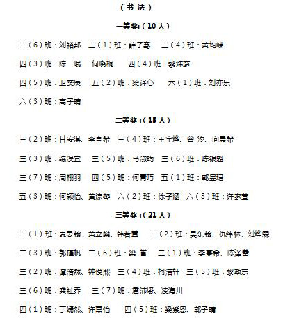 附:博实乐碧桂花城学校2020学年艺术节暨书法绘画大赛获奖名单