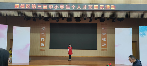 顺德区第三届中小学生个人才艺展示活动于2020年12月19日分别在顺德区实验中学和伦教中学隆重举行。我校3名选手在此前的陈村镇个人才艺比赛中脱颖而出,均以镇一等奖的佳绩参加这次顺德区决赛,比赛由舞蹈教师朱嘉,音乐教师何信非,语文教师海丹丹辅导并带队。经过激烈的角逐,我校学子在此次顺德区决赛中荣获两个一等奖和一个二等奖的好成绩。