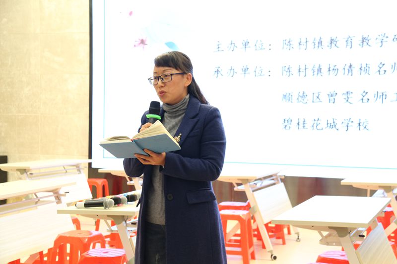第四个环节是领导讲话。李学英主任首先感谢北滘镇的同仁来陈村镇参加教研活动,她说今天欣赏到了两堂不同但同样精彩的课,获益良多。她认为这样的区域联合教研活动是非常有必要的,希望两个镇以后经常举办类似的活动。然后她以一个阅读者的身份和大家分享她的阅读经历以及她对阅读意义的理解。接着讲话的是何秀萍副主任,她讲了十六个字:相亲相爱,名名相对,强强联合,双双收获。她觉得这样的活动形式很好,群体的力量是最大的,可以让很多人受益。她非常赞同一句话:读书是老师们最本原的研修,她希望老师们能静下心多读书,带领学生阅读、悦读、越读,给学生们打开一扇智慧的窗户!