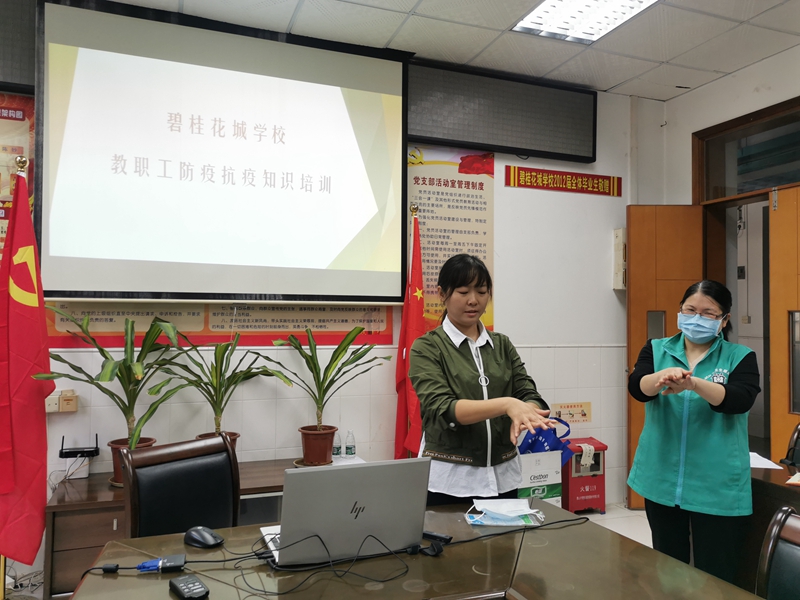 根据各级疫情防控工作部署精神,为加强新冠肺炎疫情常态化防控工作,丰富全体教职工传染病防控知识储备,确保全校学生和教职工的安全,2月21日上午,碧桂花城学校组织所有老师及后勤各部门员工在二楼会议室参加开学前防控知识培训。