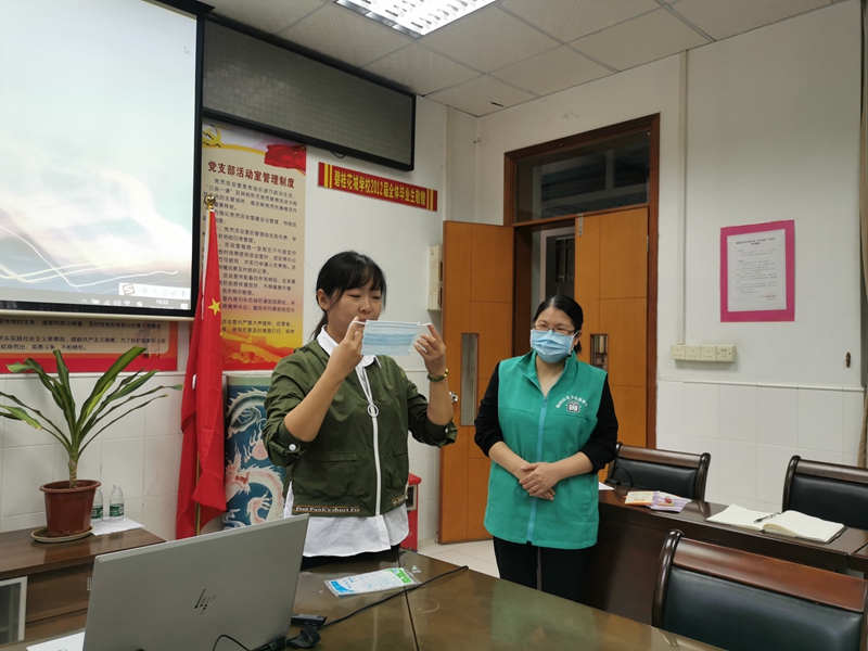 这次培训,由我校卫生副校长杨智医生主讲,他从正确佩戴口罩、关注手卫生、做好教室、宿舍、食堂各个区域的消杀工作等多个方面做了细致的讲解;之后,张秋菊护士长还针对戴口罩、物表消杀等相关知识进行实际操作的演示,带领一线老师和后勤员工们回顾梳理相关防控知识。为让与会人员更好地开展新冠防控工作,给学生们的安全返校保驾护航,洪美红医生还组织部分老师进行了疫情防控的应急处置演练。