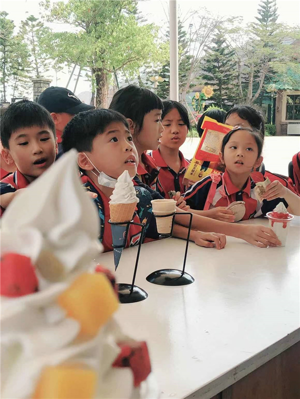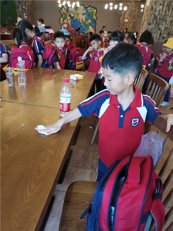 活动过程中,花城学子的良好素养也获得了园区工作人员的称赞。瞧!游戏中,他们自觉有序地排队;就餐后,他们主动收拾好餐桌,把垃圾进行分类投放;购物时,他们能大方自信地与工作人员交流,并管理好自己的财物……