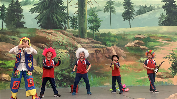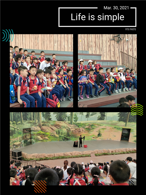 一到目的地,同学们便被眼前的美丽景象震撼了!园内成熟的设计,别致的亭台楼榭,构成了一幅幅美丽的画卷。同学们尽情徜徉在满园春色里。园区表演人员呈现了一场别具一格的演出,优美的舞蹈、奇妙的魔术和精彩的小丑表演,赢得了同学们此起彼伏的掌声。热心的“小丑姐姐”还邀请了同学们上台互动。被邀请上台的同学们落落大方,他们戴上了小丑的发饰,在舞台上打鼓、吹小号、弹吉他……更是惹得大家哈哈大笑。一串串笑声如铃,一张张笑颜如花,整个剧场就像欢乐的海洋。