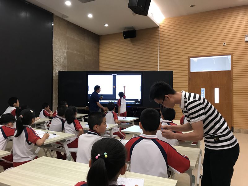 为了帮助六年级的老师尽快掌握智慧课堂的相关操作,能在下学期熟练使用智慧课堂各项功能。同时让三年级学生提前接触智慧课堂,激发他们对此项目的兴趣,学会简单的操作,本学期学校安排了六年级6位老师和三年级1位老师给三年级7个班的学生上一节智慧课堂过关课。学校精心地给每个上课老师安排了一个师父,通过师徒结对方式让上课老师熟悉智慧课堂设备。六年级老师与三年级老师紧密沟通,提前带学生到学术报告厅体验如何使用智慧本和智慧笔,学生对高科技设备充满了好奇,个个认真学习并在不断的尝试中很快就掌握了正确的使用方法。
